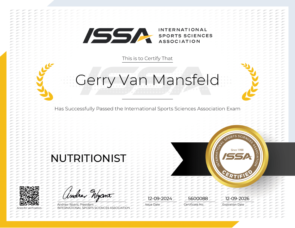 In the world of wellness and recovery, there’s a lot of noise, and not all advice is created equal. That’s why I chose to earn my Certified Nutrition Coach credential through the International Sports Sciences Association (ISSA) — one of the most trusted names in evidence-based health education.
